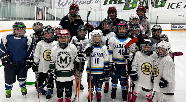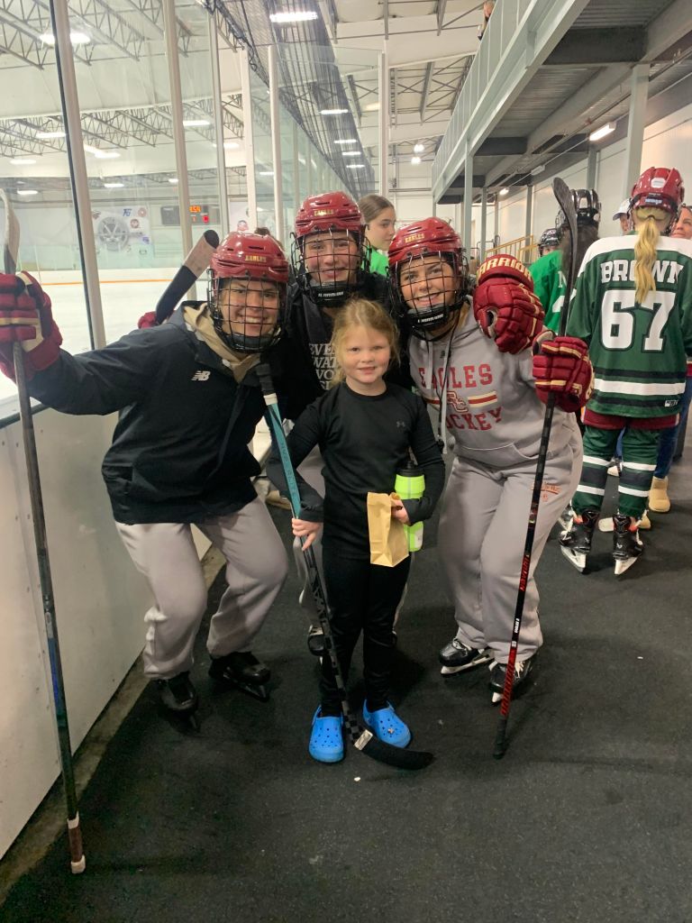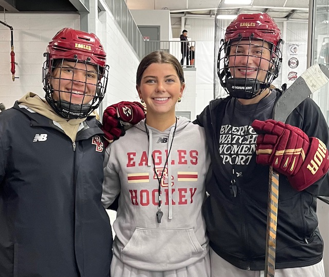 Boston College Women’s Hockey team members left to right Grace Campbell, Alanna Devlin, and Jade Arnone
